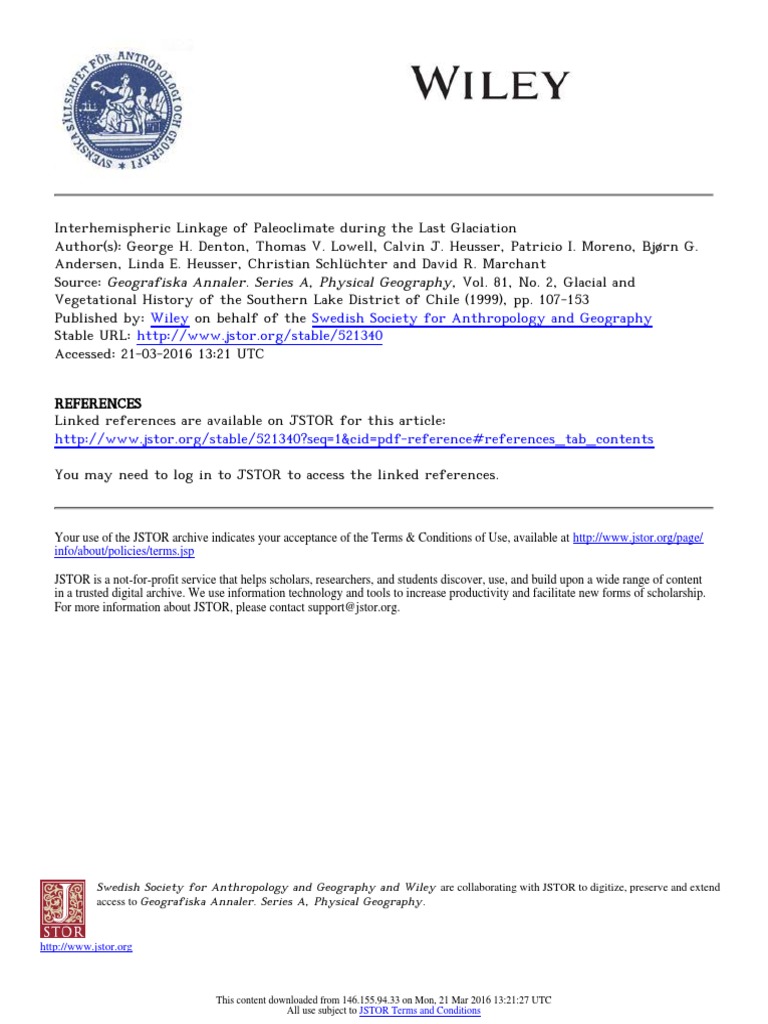 Author(s): George H. Denton, Thomas V. Lowell, Calvin J. Heusser, Patricio I. Moreno, Bjrn G.