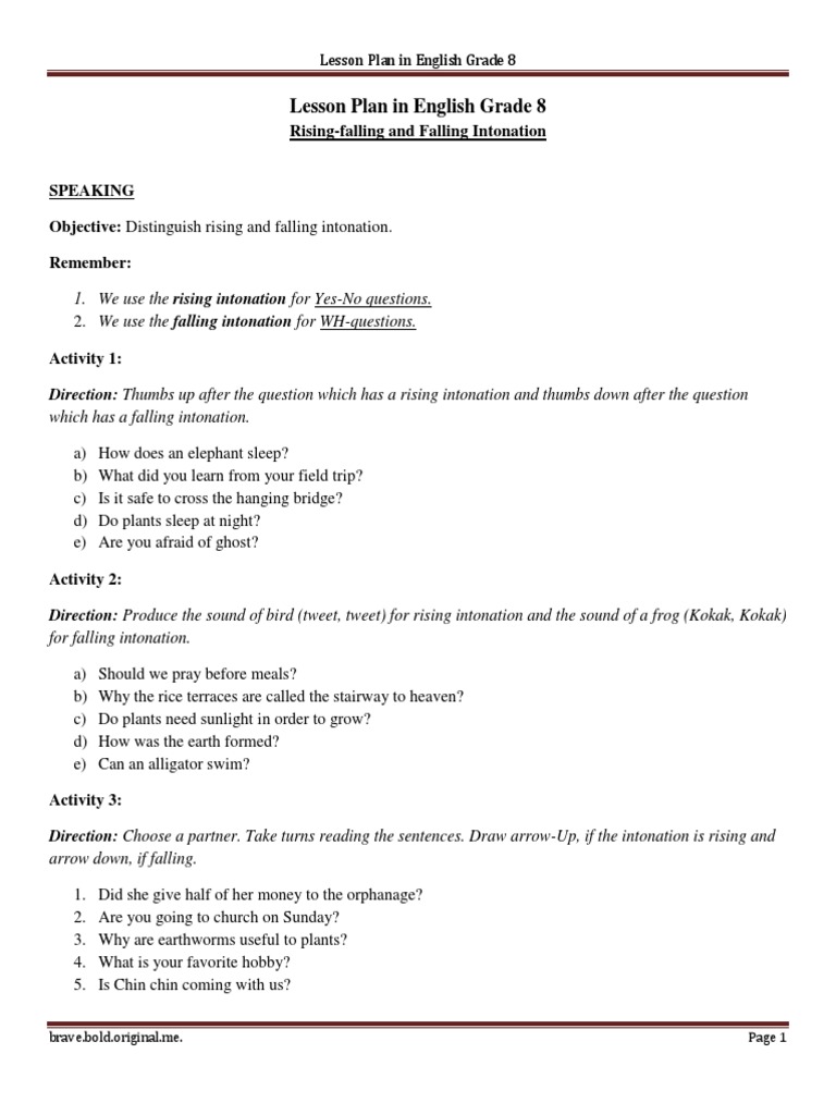 the questions that follow. Take note of the rising and falling intonation at the end of each sentence.