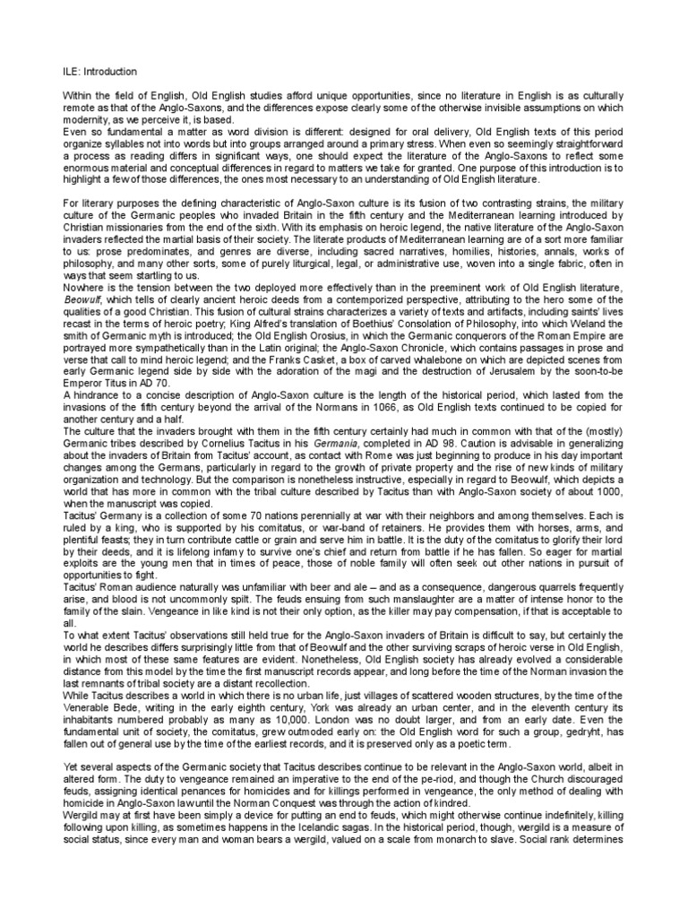Yet several aspects of the Germanic society that Tacitus describes continue to be relevant in the Anglo-Saxon world, albeit in