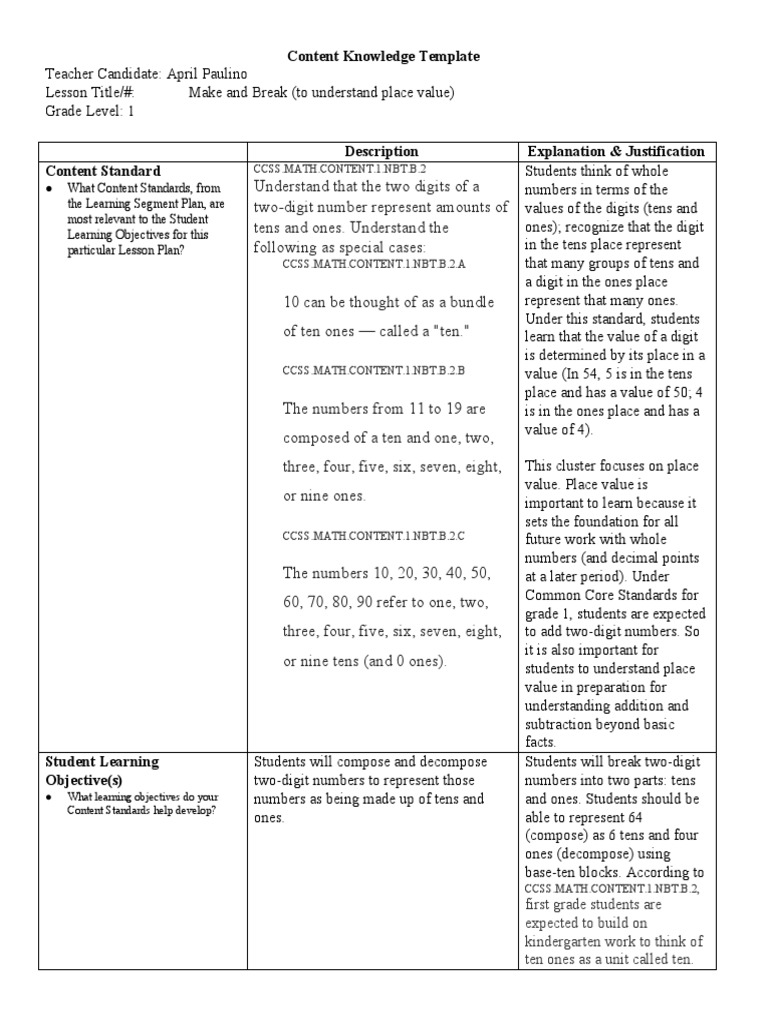 Content Knowledge Template