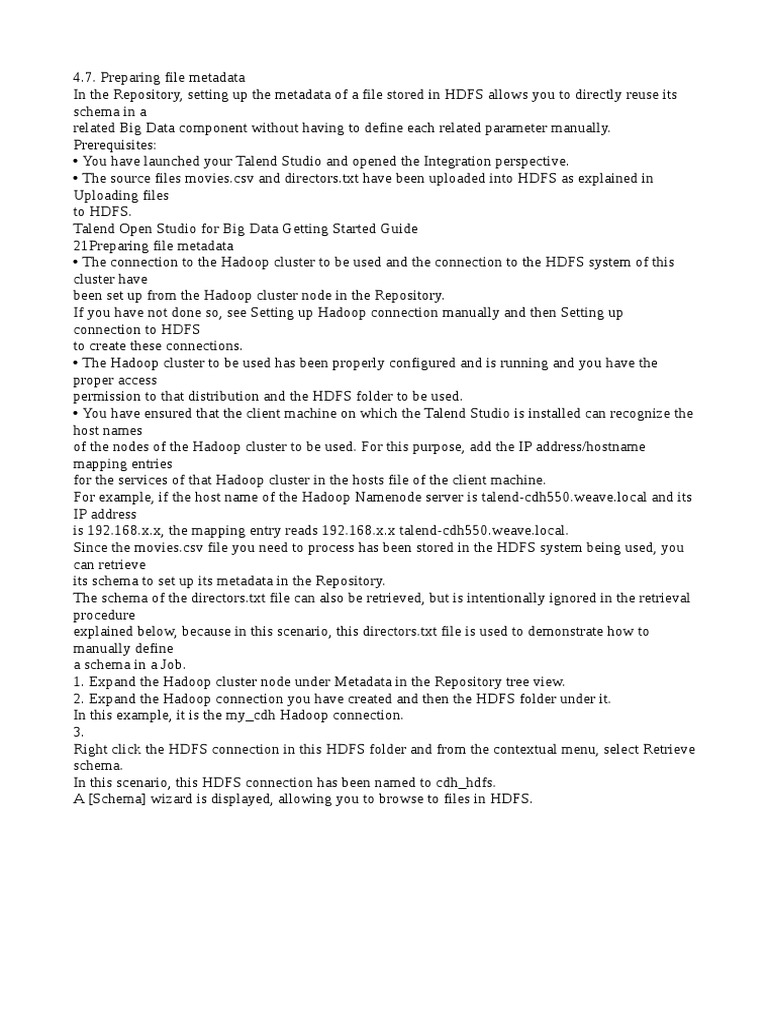 configuration when you were creating the HDFS connection as explained in Setting up connection