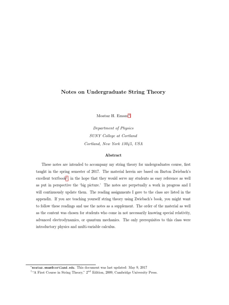taught in the spring semester of 2017. The material herein are based on Barton Zwiebachs