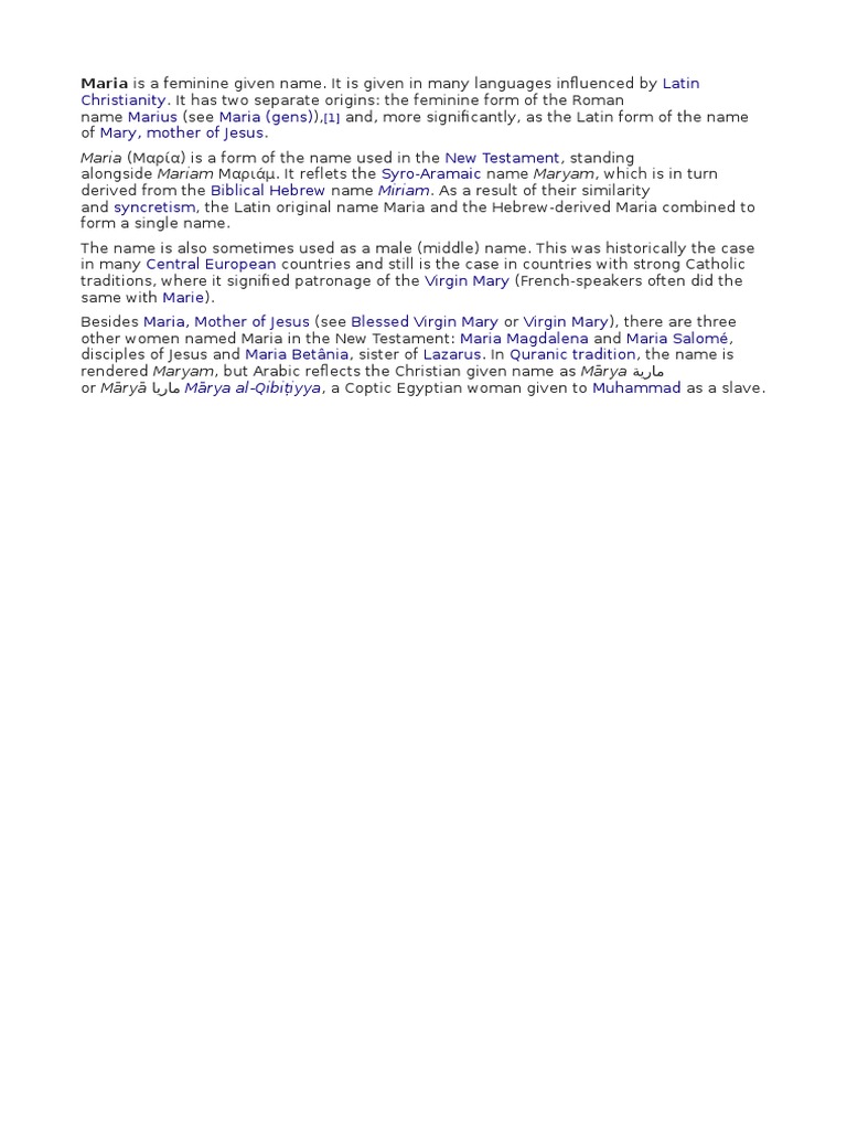 name Marius (see Maria (gens)),[1] and, more significantly, as the Latin form of the name