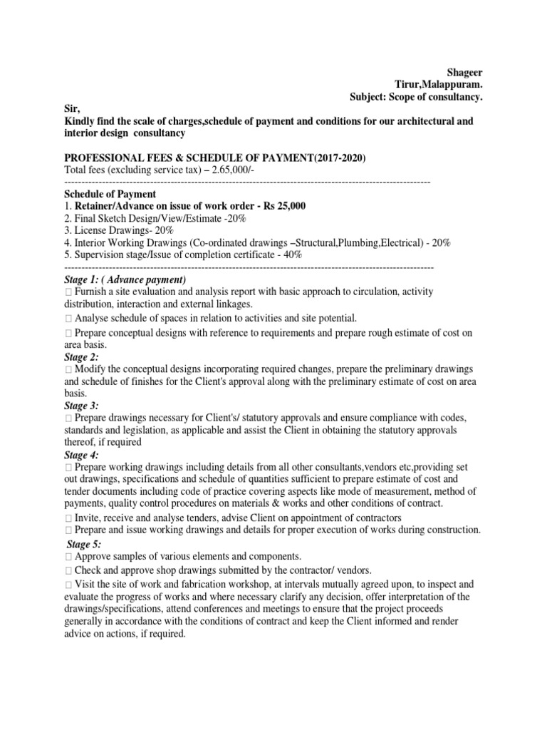 Kindly find the scale of charges,schedule of payment and conditions for our architectural and