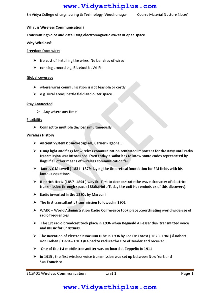 EC2401 Wireless Communication Unit 1 Page 1