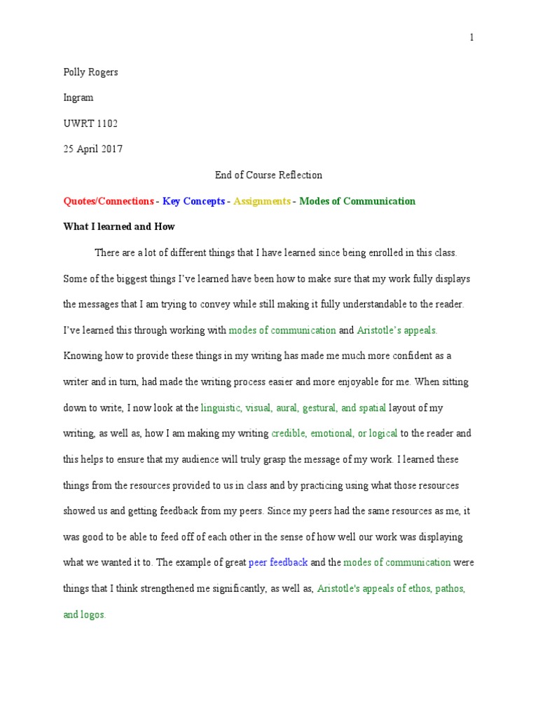 Ive learned this through working with modes of communication and Aristotles appeals.