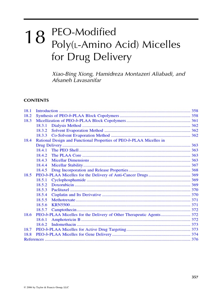 Emphasis has been placed on the application of PEO-b-PLAA- micelles for the targeted delivery