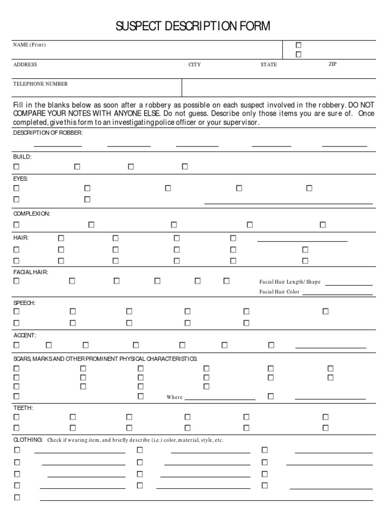 Fill in the blanks below as soon after a robbery as possible on each suspect involved in the robbery. DO NOT
