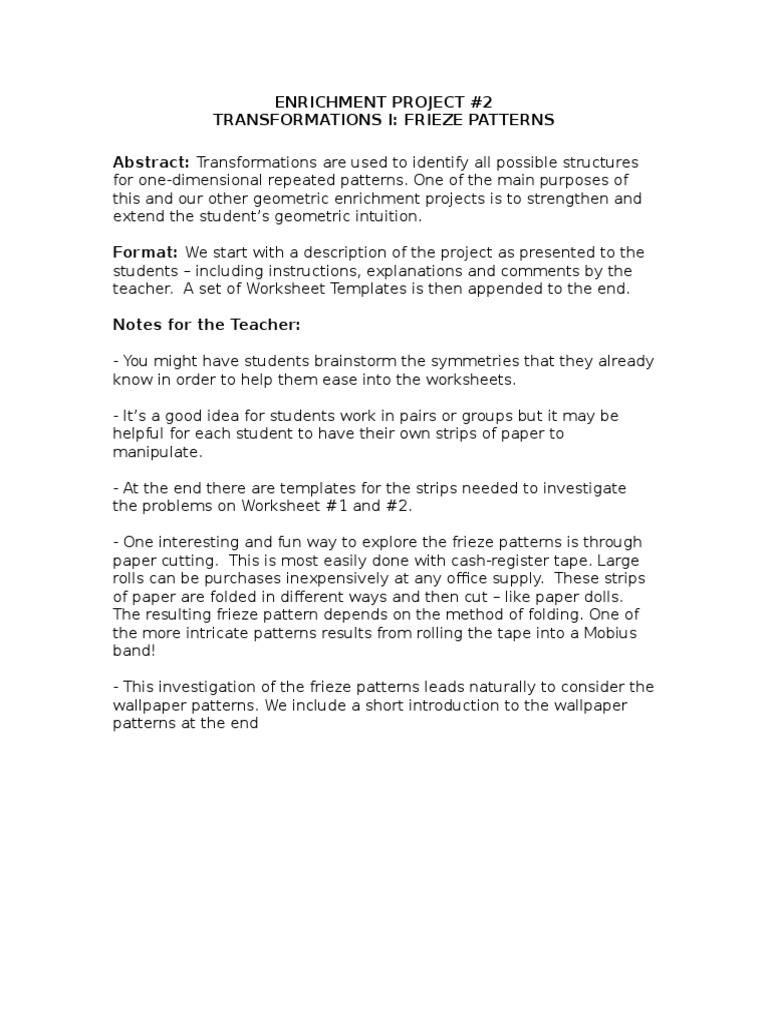TRANSFORMATIONS I: FRIEZE PATTERNS