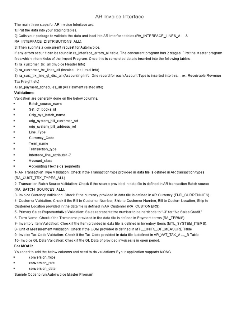2] Calls your package to validate the data and load into AR Interface tables (RA_INTERFACE_LINES_ALL &
