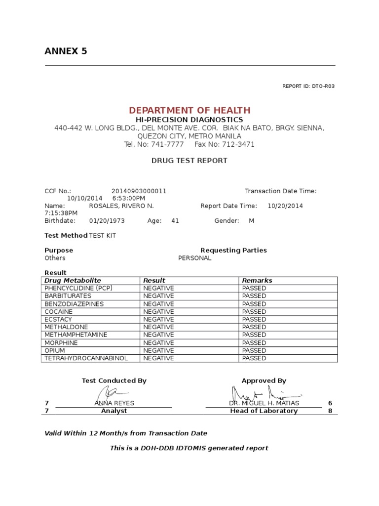 DRUG TEST REPORT