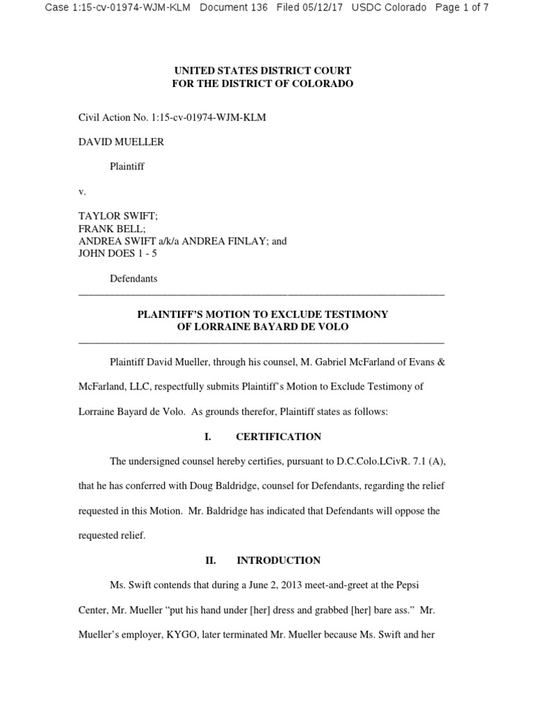 Mueller Motion To Exclude Testimony