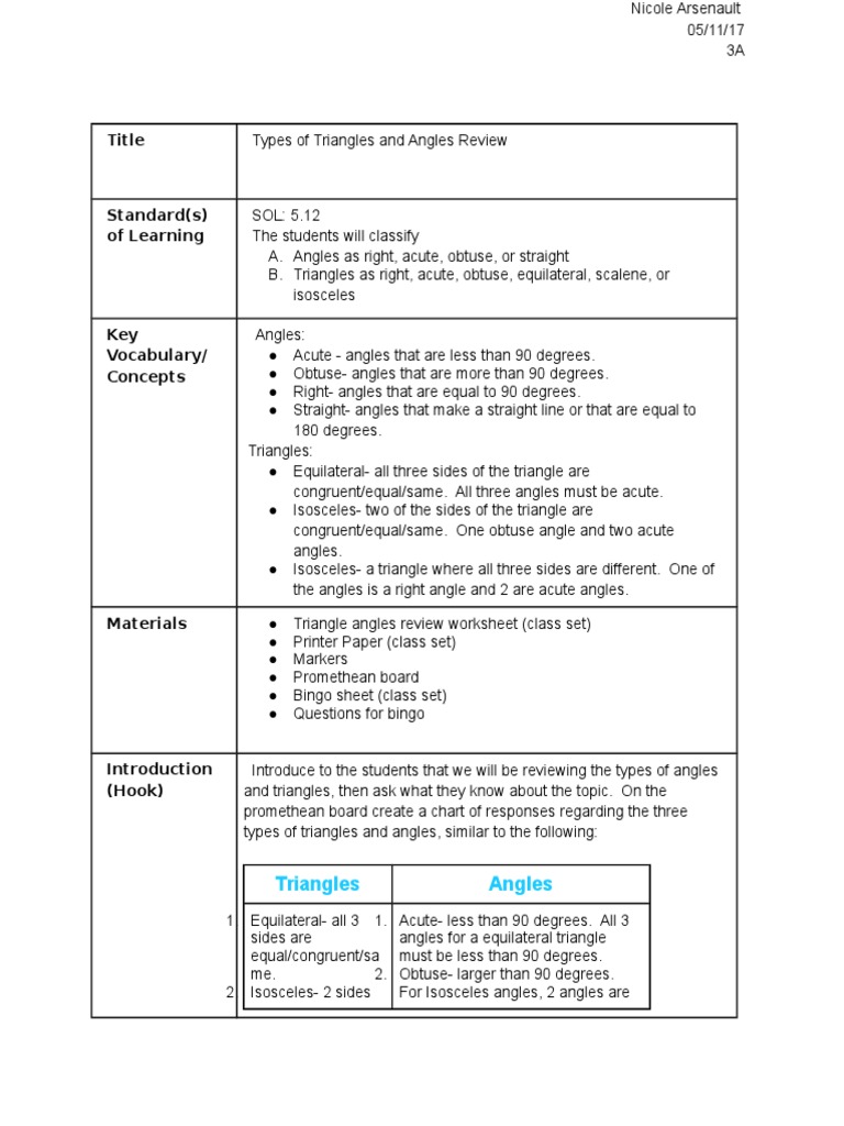 Introduction Introduce to the students that we will be reviewing the types of angles