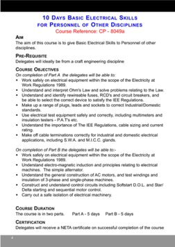 10 Day Basic Electrical Skills for Personnel of Other Disciplines: Details the comprehensive 10-day course focused on expanding upon the basics of electrical skills introduced in the 5-day course.