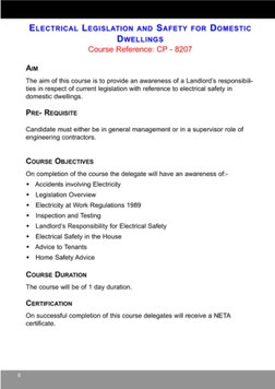 Electrical Legislation and Safety for Domestic Dwellings: Discusses the legal and safety requirements for electrical installations in domestic properties.