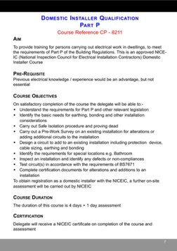 Part P Domestic Installer Qualification: Covers the preparations and qualifications necessary for becoming a domestic electrical installer under Part P regulations.