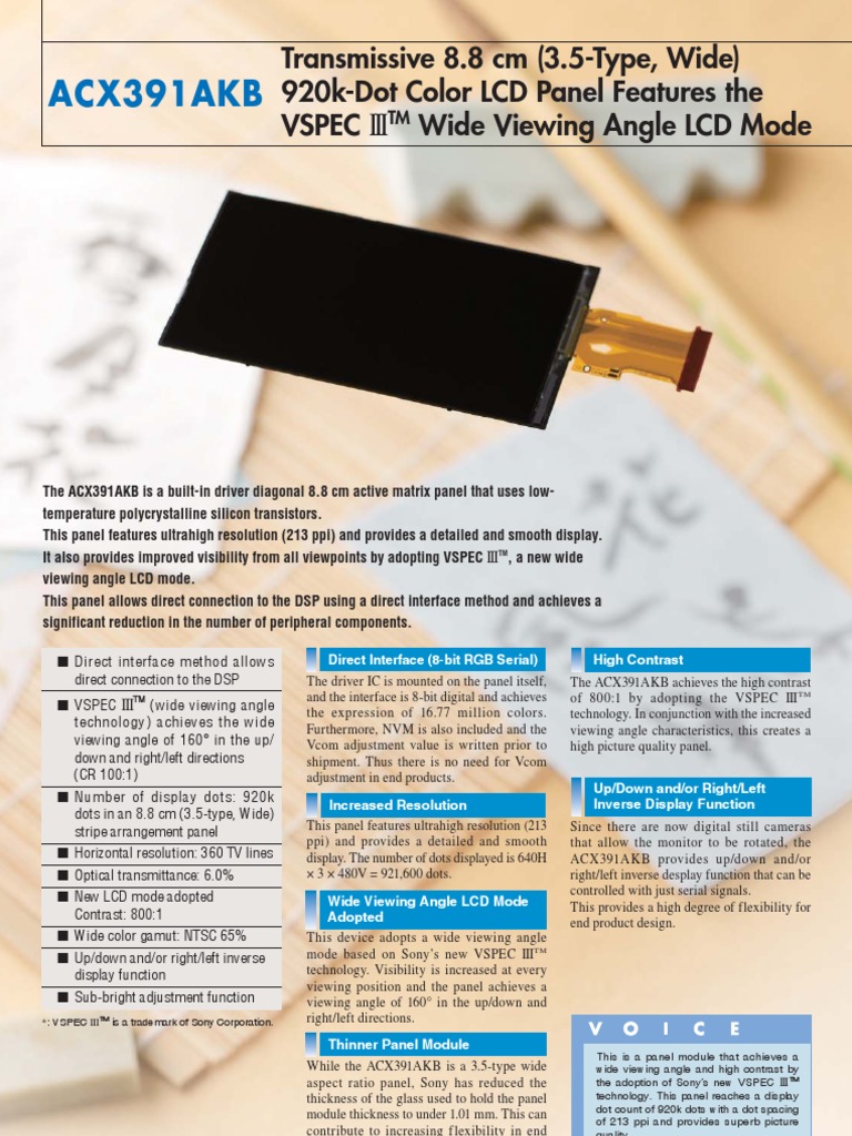 While the ACX391AKB is a 3.5-type wide wide viewing angle and high contrast by