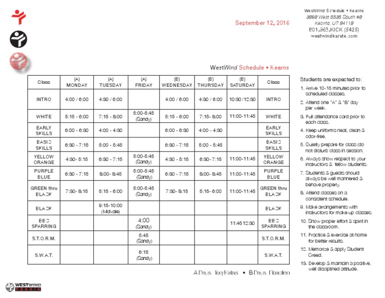 WestWind Schedule Kearns