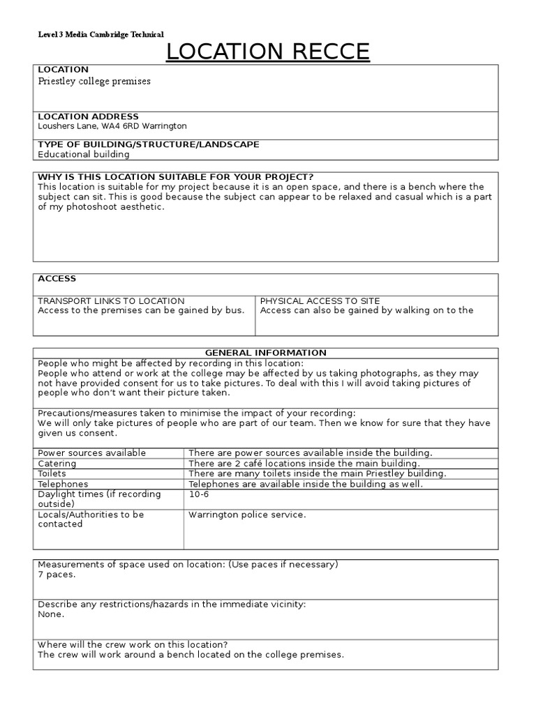 (N.B. this does not replace the Risk Assessment form which must be carried out for any practical project)