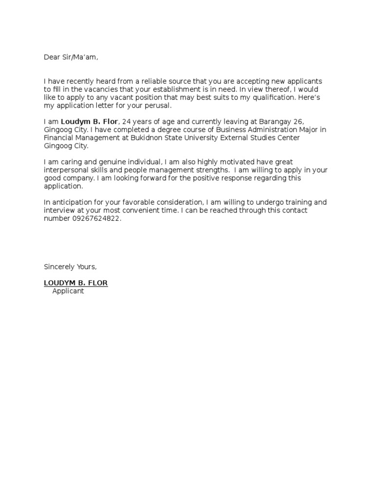 to fill in the vacancies that your establishment is in need. In view thereof, I would