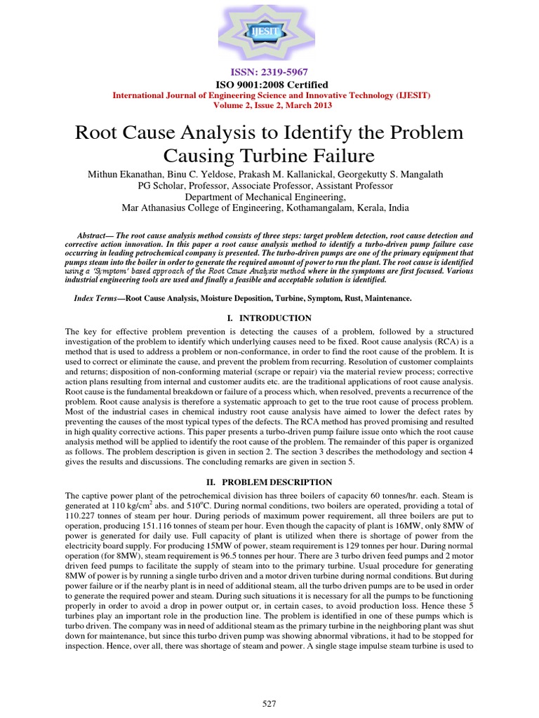 pumps steam into the boiler in order to generate the required amount of power to run the plant. The root cause is identified
