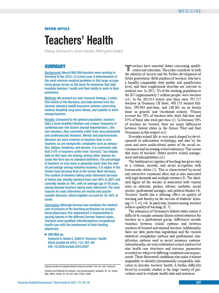 Teachers' Health: Klaus Scheuch, Eva Haufe, Reingard Seibt