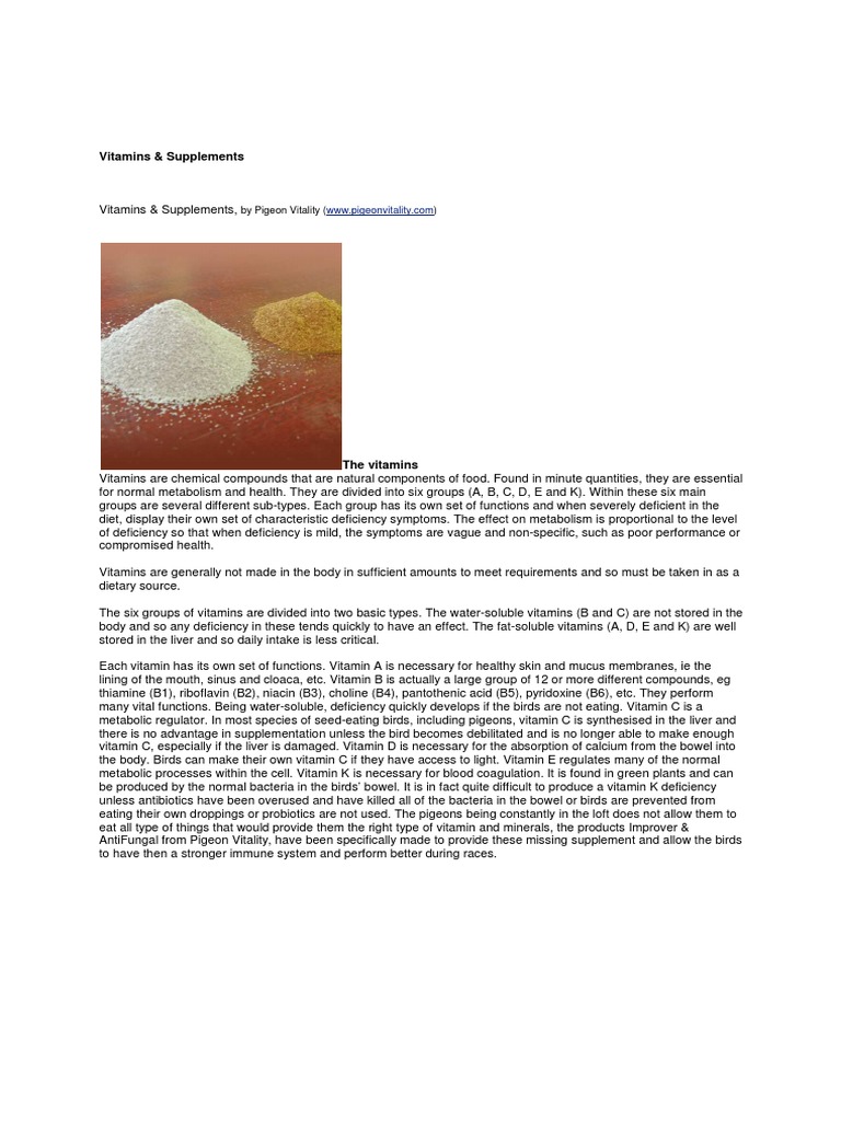 Vitamins & Supplements, by Pigeon Vitality (www.pigeonvitality.com)