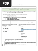 Observer feedback on the lesson plan, including commendations and recommendations for improving aspects of the learning