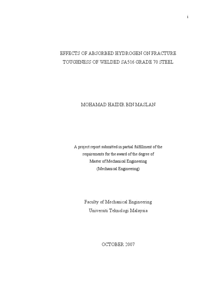 Kesan penyerapan hidrogen ke atas struktur dan sifat bahagian kimpalan pada besi