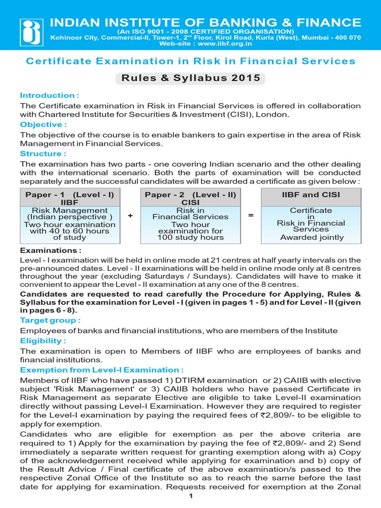 Paper - 1 (Level - I) Paper - 2 (Level - II) IIBF and CISI