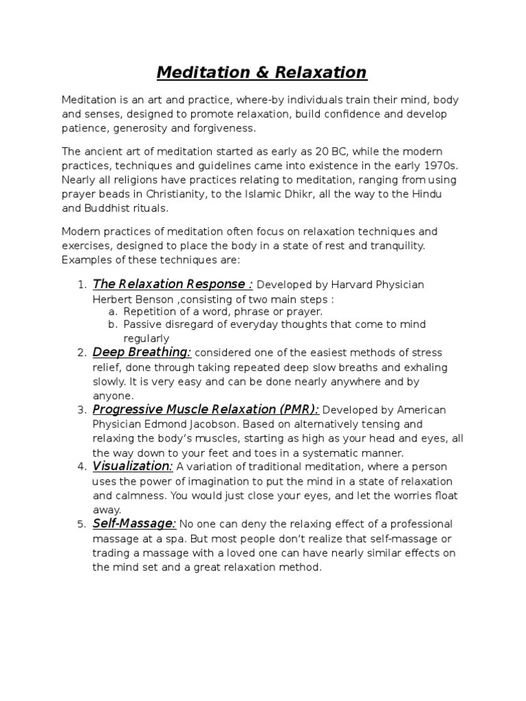 Modern practices of meditation often focus on relaxation techniques and