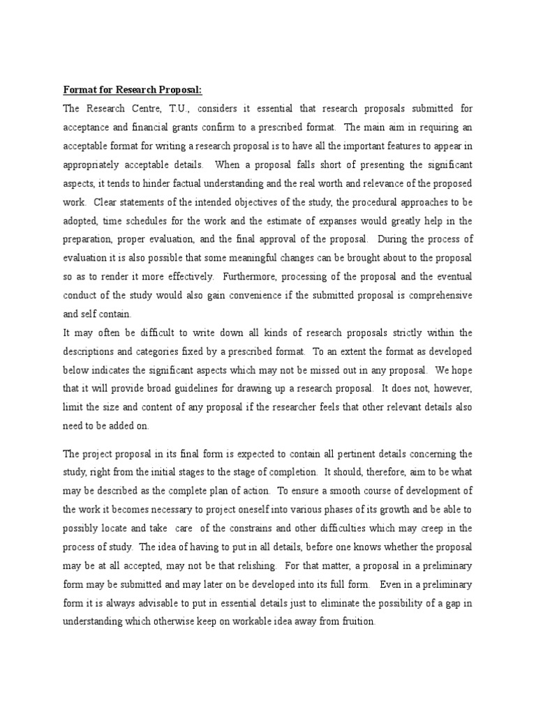 The Research Centre, T.U., considers it essential that research proposals submitted for