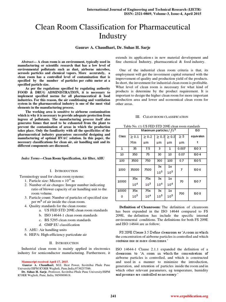 Clean Room Classification for Pharmaceutical Industry