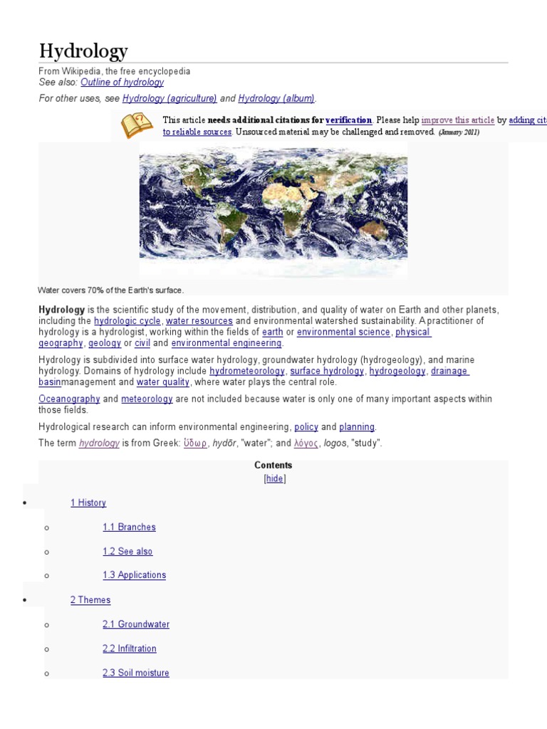 For other uses, see Hydrology (agriculture) and Hydrology (album).