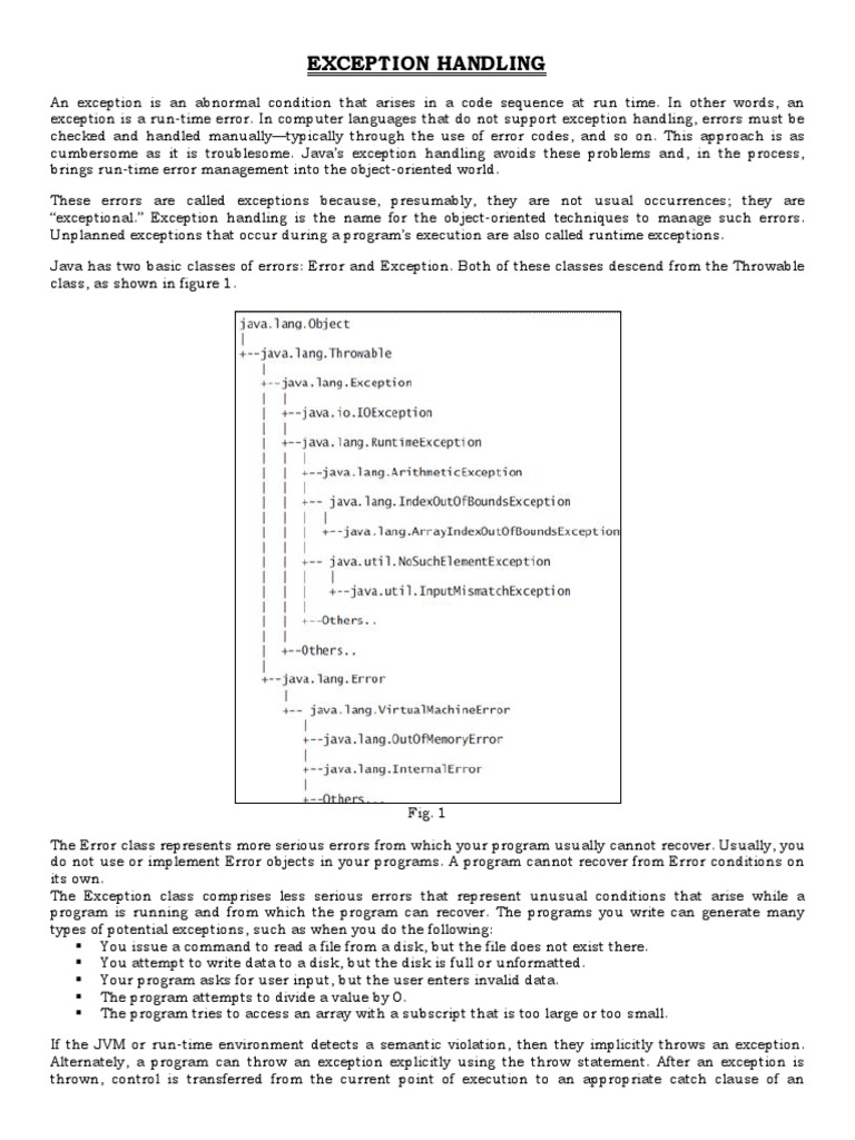 exceptional. Exception handling is the name for the object-oriented techniques to manage such errors.