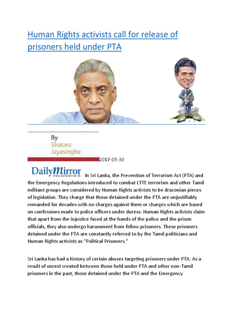 Sri Lanka has had a history of certain abuses targeting prisoners under PTA. As a
