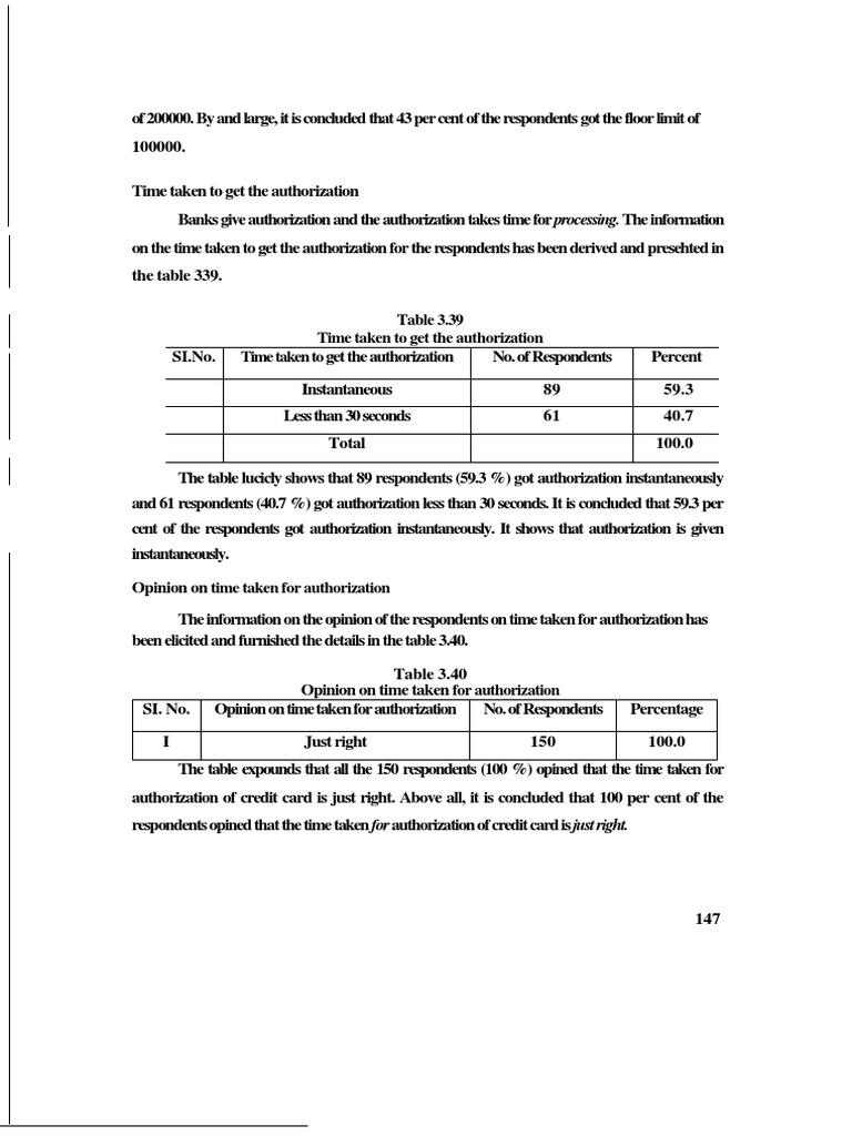 and 61 respondents (40.7 %) got authorization less than 30 seconds. It is concluded that 59.3 per