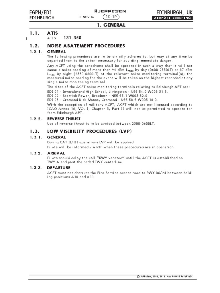 Noise preferential routes and procedures as specified below and on Edinburgh SID