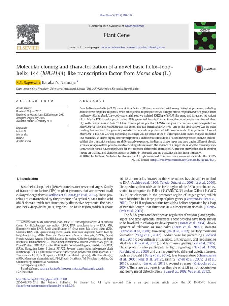 (K.N. Nataraja). and heavy metal detoxication (Yuan et al., 2008; Wu et al., 2012).