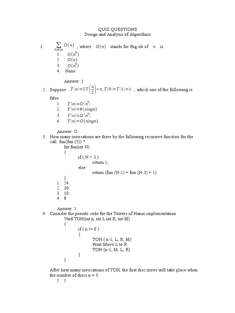 Algorithm Design Quiz Questions