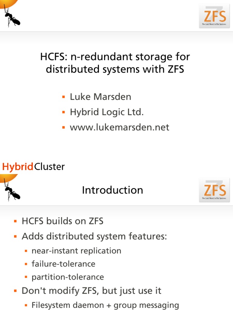A talk about HCFS, the Hybrid Web Cluster filesystem, given by Luke Marsden of Hybrid Logic at the July 2010 LOSUG meeting at the Oracle offices in London.