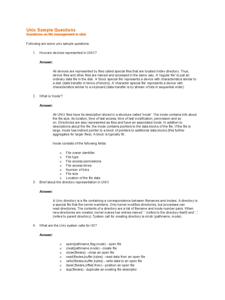 Unix File Management Sample Questions