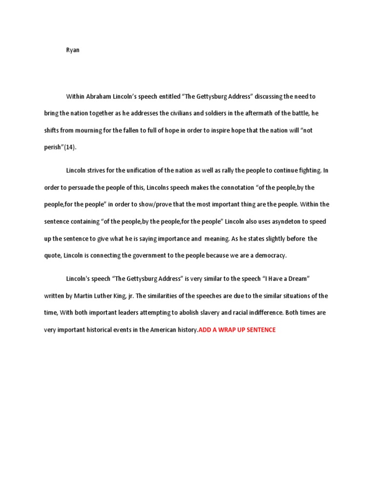 Within Abraham Lincolns speech entitled The Gettysburg Address discussing the need to