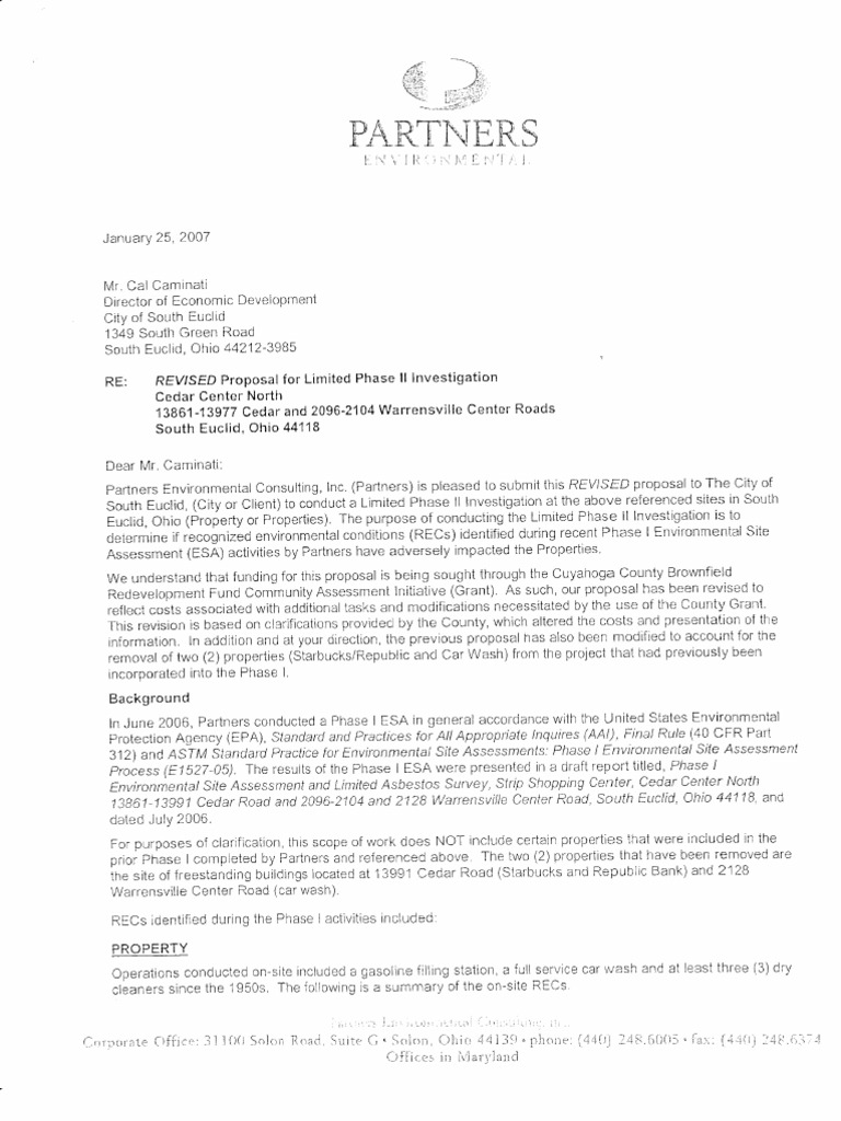 partnersEnvironmental Consulting, lnc.(Partners) rs pleasedto submiiihis RFV/SEDproposalto The Cityof