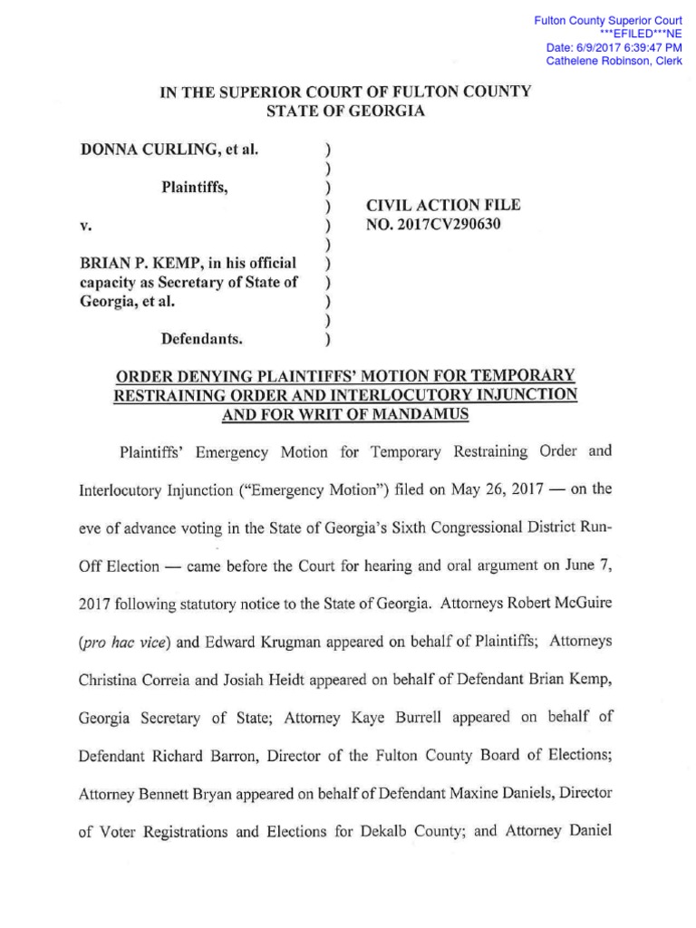 Christina Correia and Josiah Heidt appeared on behalf of Defendant Brian Kemp,