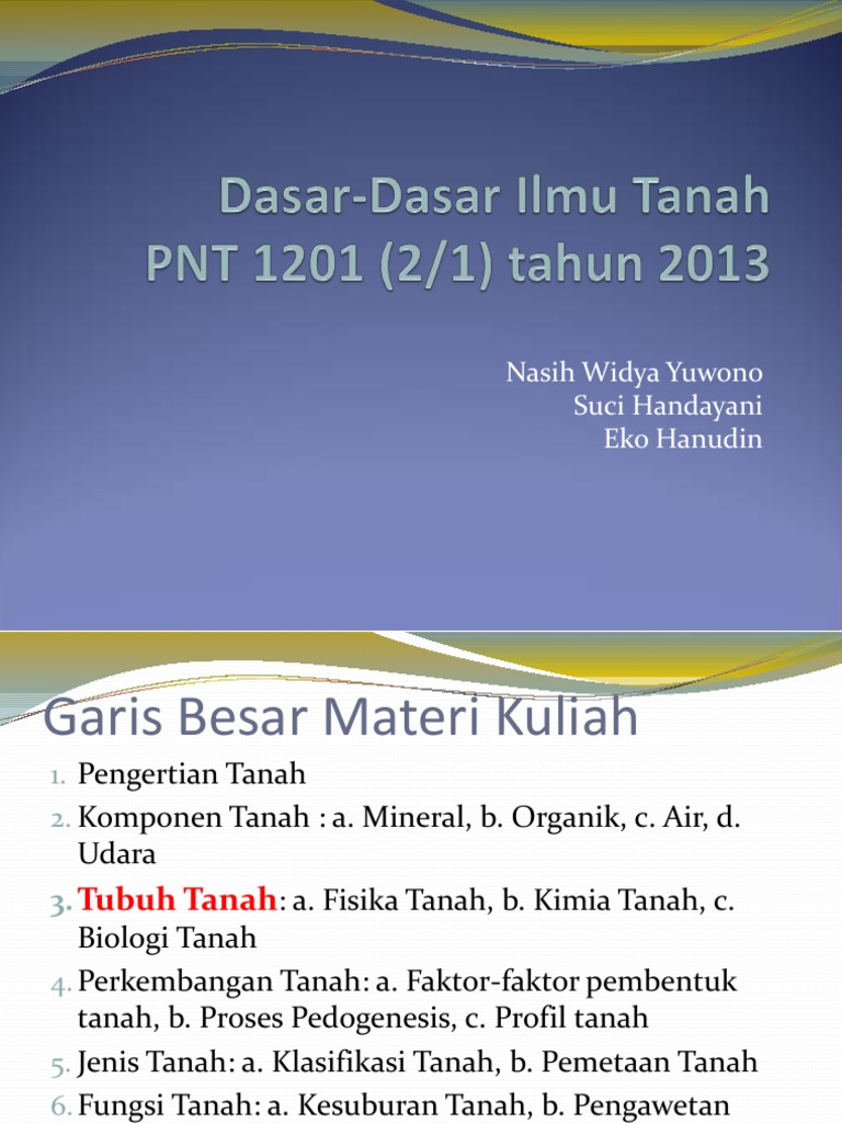 3. Tubuh Tanah: a. Fisika Tanah, b. Kimia Tanah, c.