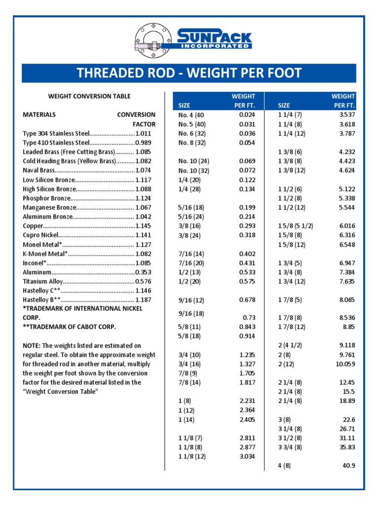 for threaded rod in another material, multiply 3/4 (16) 1.327 2 (12) 10.059
