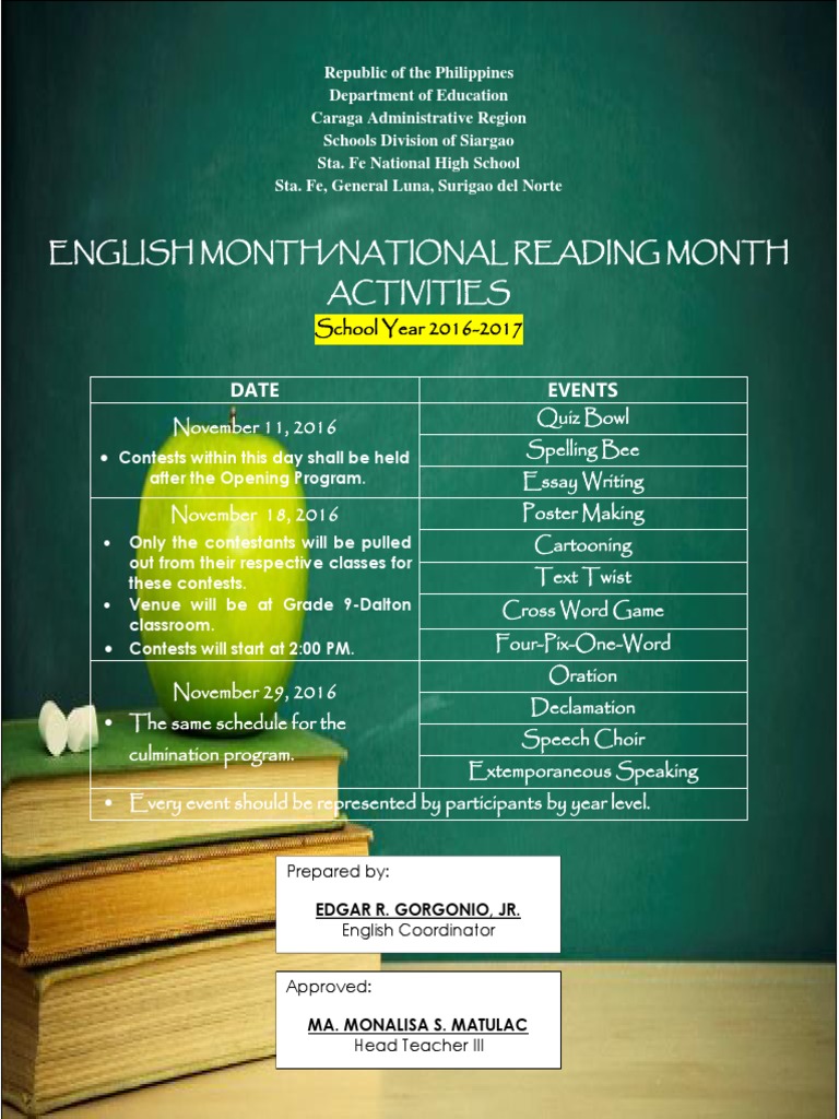 ENGLISH MONTH/NATIONAL READING MONTH