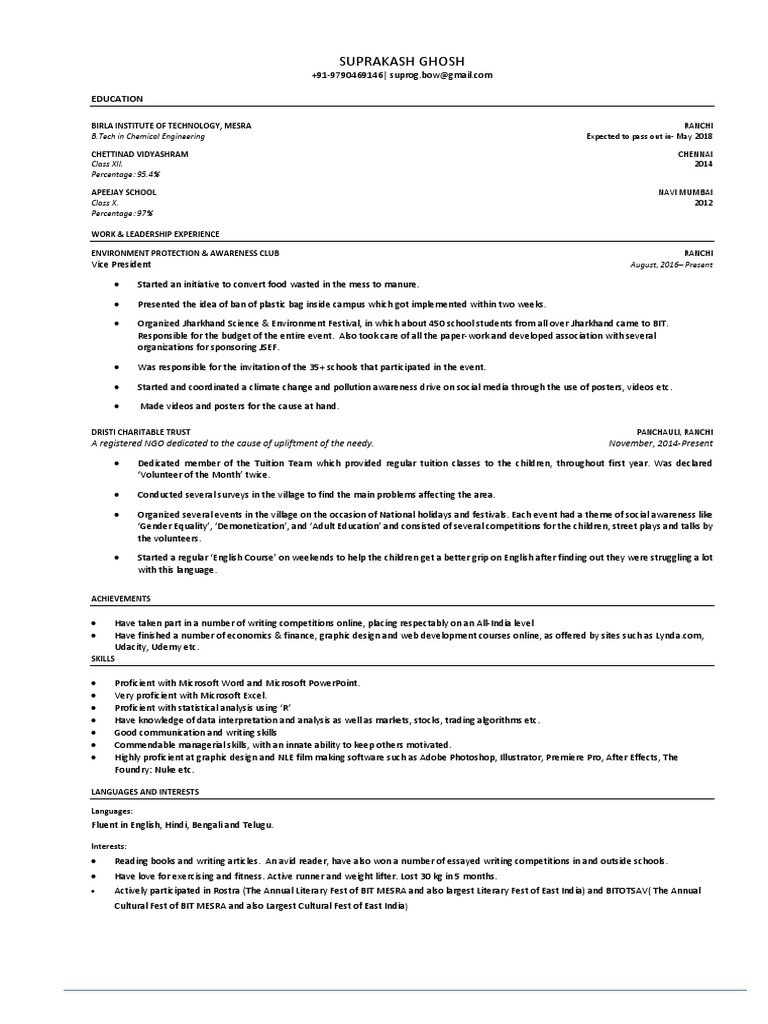 Fluent in English, Hindi, Bengali and Telugu.