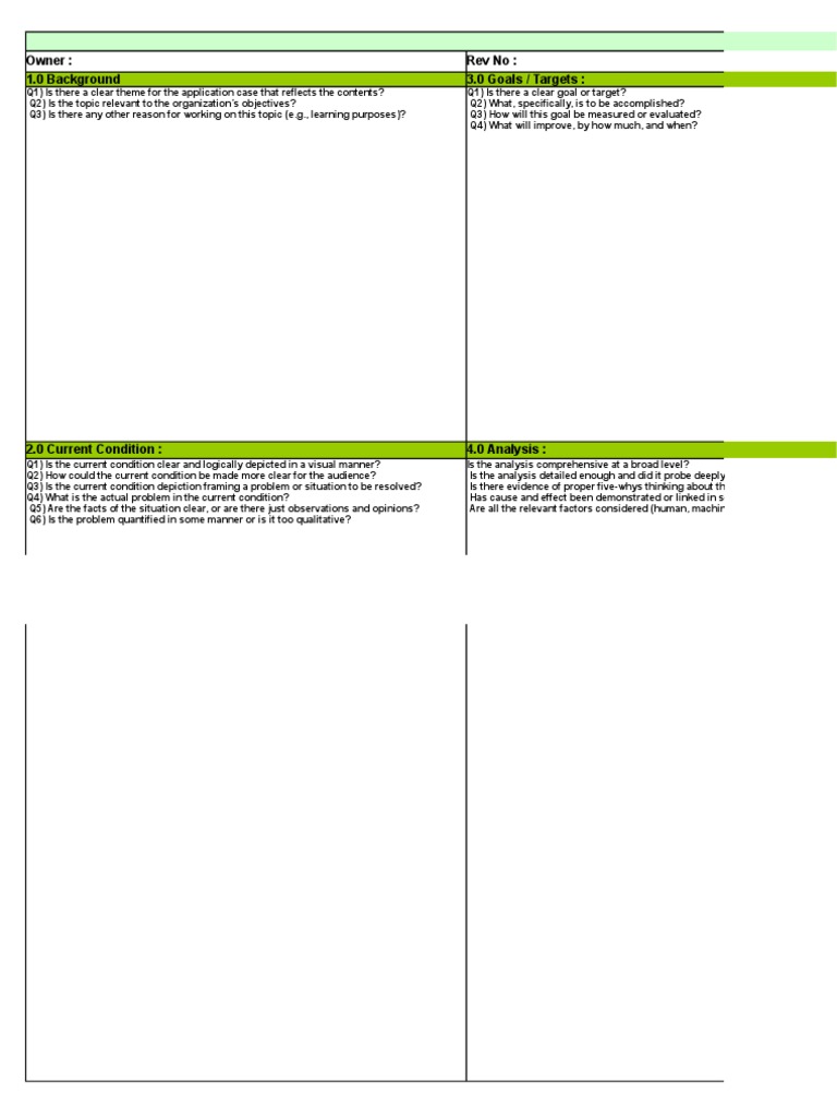 Q1) Is there a clear theme for the application case that reflects the contents? Q1) Is there a clear goal or target?